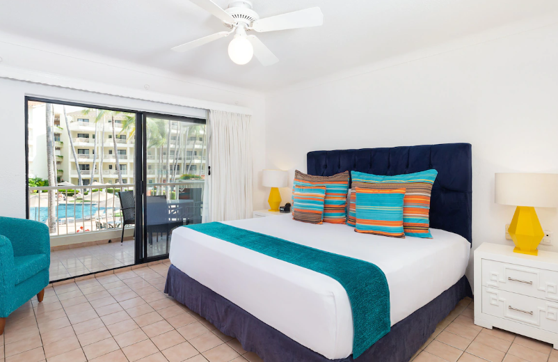 Experience ultimate comfort and relaxation in our Junior Suite at Villa del Palmar Puerto Vallarta, featuring fresh colors, luxurious materials, a choice of king-sized or double beds, a spacious bathroom with travertine marble, a fully equipped kitchenette, a dining area for two, and a balcony with breathtaking ocean or garden views.